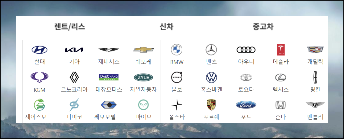 다나와 자동차 홈페이지에서 기아를 선택하세요. suv 차종과 더불어 국내 차량은 물론이고 해외 유명 브랜드의 차량 정보까지 한 곳에서 확인할 수 있어요.