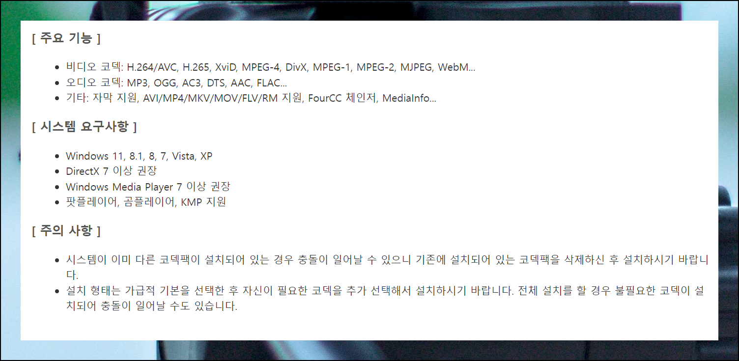 설치를 진행하기 전에 알아둘 내용이 있어요. 이 통합코덱은 곰플레이어가 영상과 음악을 잘 재생할 수 있게 도와주는 프로그램이에요. 통합코덱설치로 윈도우에서 더욱 안정적인 재생이 가능하며, DirectX나 미디어 플레이어도 함께 업데이트해 주니까 걱정하지 않으셔도 됩니다.