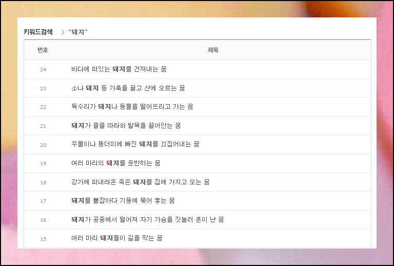 꿈해몽을 찾는 방법은 두 가지예요. 키워드로 직접 검색하거나 카테고리에서 원하는 항목을 고르는 방식입니다. 어떤 방법을 선택하더라도 무료풀이 결과를 동일하게 볼 수 있으니, 본인에게 편한 방법을 이용하시면 됩니다. 검색에 익숙하지 않은 분들은 카테고리 방식을 추천해요.