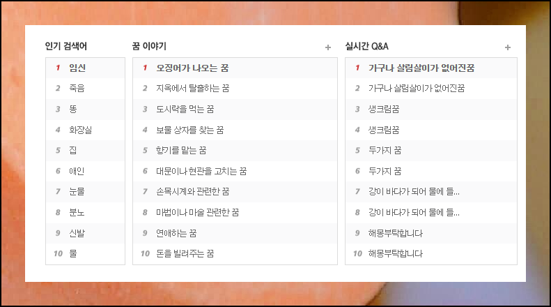전문가들이 수천 가지의 사례를 분석하고 정리해둔 자료를 바탕으로 상세한 풀이 결과를 제공해드려요. 특히 시험, 취업, 연애 등 실생활과 관련된 운세 정보도 함께 확인할 수 있다는 게 큰 장점입니다.