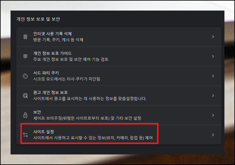 크롬 브라우저를 실행하고, 우측 상단의 전세계 아이콘을 찾아주세요. 설정 메뉴로 들어가면 "개인 정보 보호 및 보안"이라는 항목이 나옵니다. 여기서 "사이트 설정"으로 이동해주세요. 생각보다 어렵지 않으니 제가 알려드리는 방법은 순서대로 따라하시면 누구나 해당 과정을 진행할 수 있습니다.
