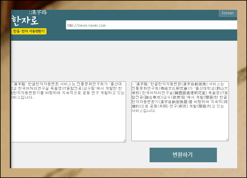전통문화연구회에서 개발한 "한자로" 사이트를 방문하면 한글을 한자로 변환할 수 있는 프로그램을 쉽게 접할 수 있어요.