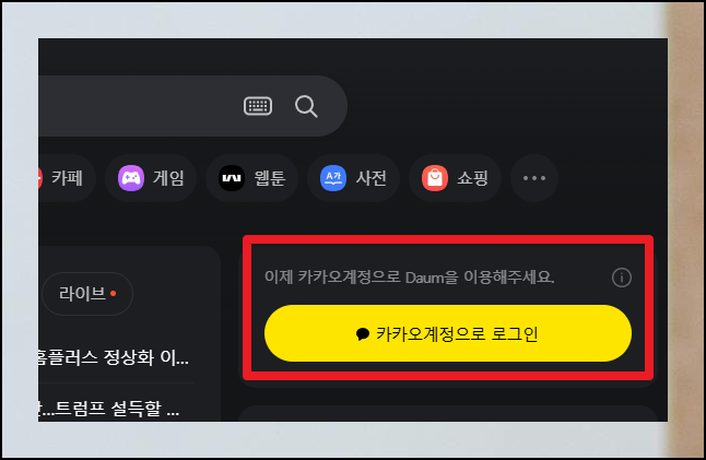 국내에서 가장 많이 활용되는 카카오 계정을 기준으로 설명해드리겠습니다. 주소를 검색하려면 먼저 나의 계정 정보가 필수적입니다. 다음 사이트 메인 화면에서 카카오 계정 로그인 버튼을 선택하여 시작하세요. 이 절차는 다음 서비스와 유사하게 제공하고 있습니다.
