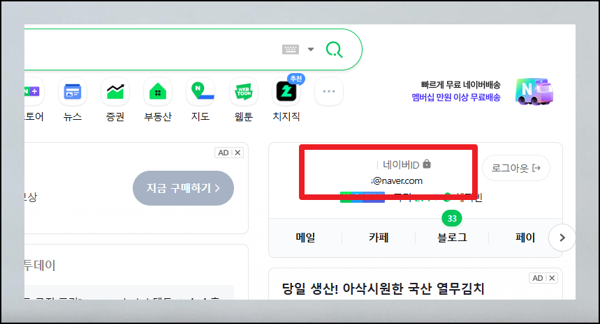 네이버 메인 페이지에 로그인한 후, 화면 오른편에 표시된 프로필 정보를 살펴보세요. 여기에 이메일이 바로 표시되어 있습니다. 다른 플랫폼과 달리 추가 단계 없이 즉시 확인할 수 있어 매우 간편합니다.