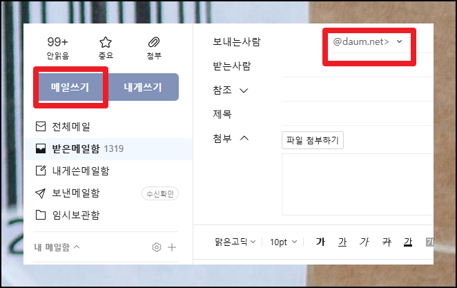 다음 사이트에 접속한 다음에 이메일 서비스로 이동하세요. 화면 왼쪽에 위치한 "내게쓰기" 버튼을 눌러보세요. 그럼 간단하게 여러분의 카카오 주소를 쉽게 확인할 수 있습니다.