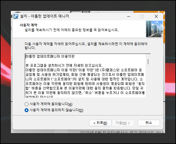파일 다운로드가 완료되면 해당 파일을 더블클릭해서 실행해 보세요. 그러면 아틀란 업데이트 매니저 프로그램에 대한 설치 마법사가 자동으로 시작됩니다. 설치 과정은 매우 직관적이고 간단해요. 화면에 표시되는 안내 문구를 차근차근 읽어보고 다음 단계로 넘어가면 됩니다.