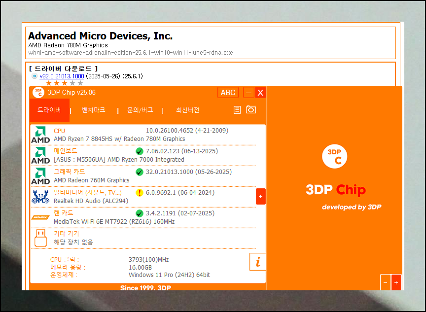 (3) 3dp chip으로 그래픽카드 드라이버 설치하기