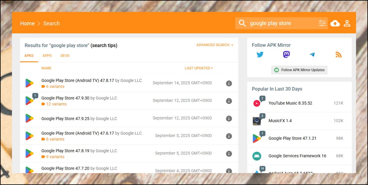 APKMIRROR 홈페이지에 접속하면 인기 게임과 유용한 앱들이 화면에 정렬되어 나타나요. 원하는 앱을 선택하면 APK 설치 파일을 바로 다운로드할 수 있습니다. 받은 파일을 스마트폰으로 전송한 다음, 관리자 앱을 실행해서 APK 파일을 터치하면 설치가 자동으로 진행돼요.