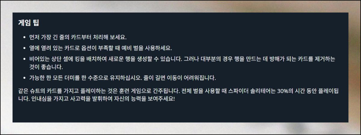 | 스파이더 카드게임 다운로드 없이 바로즐기기 (0) | 2026.02.20 |