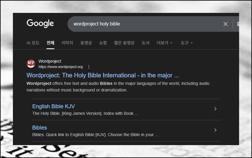 지금 소개한 음성 성경 듣기 서비스는 wordproject 웹페이지를 열면 곧장 쓸 수 있습니다. 화면은 영문이지만 음원은 전부 우리말 녹음본으로 제공되니 부담 갖지 않으셔도 돼요.