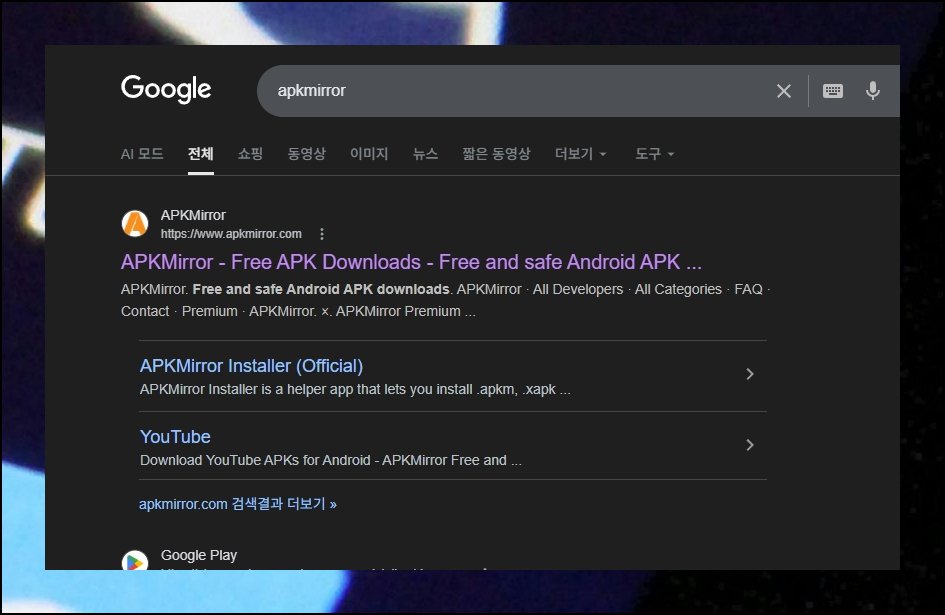구글 플레이 스토어는 안드로이드 기반의 기기에서만 온전히 동작하는 점을 먼저 알아 두세요. 데스크톱 윈도우 환경이라면 블루스택 같은 에뮬레이터를 깔아서 우회 이용이 가능합니다. 안드로이드 단말기가 준비된 상태라면 APKMIRROR 사이트에 접속하세요. 무결성이 검증된 설치 파일을 안전하게 공급하는 신뢰도 높은 플랫폼이에요.