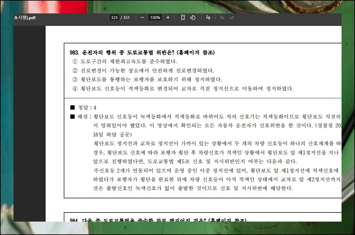 | 운전면허 필기시험 무료 예상문제집 추천 (0) | 2025.02.05 |