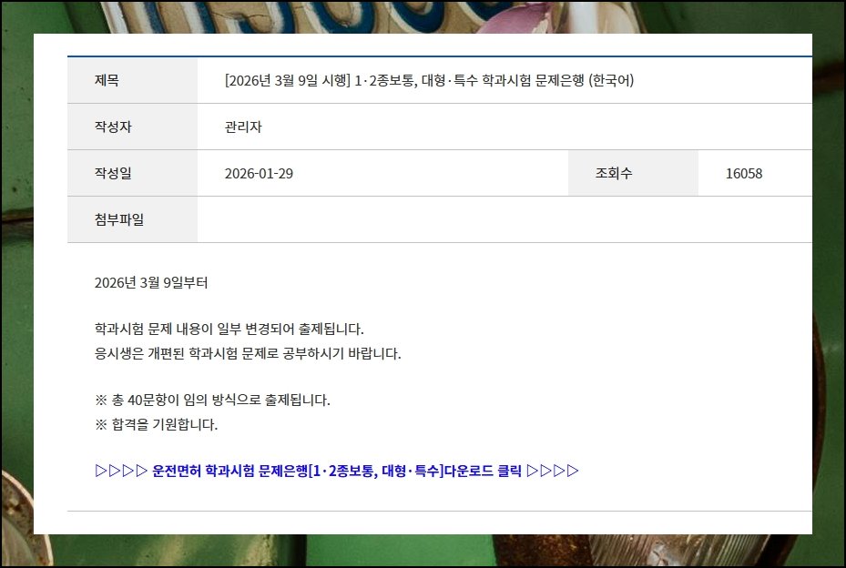 2종 외에 다른 종별 운전면허를 목표로 하시는 분들도 같은 방법으로 자료를 활용할 수 있어요. 별도의 교재 구매 없이도 예상문제만 반복해서 풀어보면 합격 가능성이 훨씬 높아집니다. 지금부터 필기시험 대비 자료를 무료로 내려받는 방법을 차근차근 안내해 드릴게요.