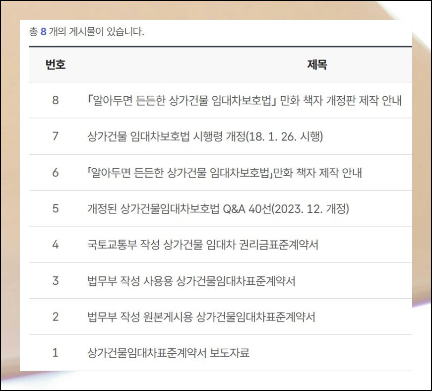부동산 관련 규정이 새로 손질되면 임대차 계약서의 항목도 달라지곤 해요. 한참 전에 받아둔 무료양식을 그냥 쓰면 뜻하지 않은 허점이 드러날 수 있으니 조심해야 합니다. 가장 근래에 반영된 판본을 내려받는 걸 습관으로 들이는 게 좋아요. 법무부 홈페이지에 접속해 원하는 항목을 찾아 클릭하면 됩니다. 규정 변경 직후에 부동산 거래를 앞둔 상태라면 이 단계를 꼭 거쳐보시길 권합니다.