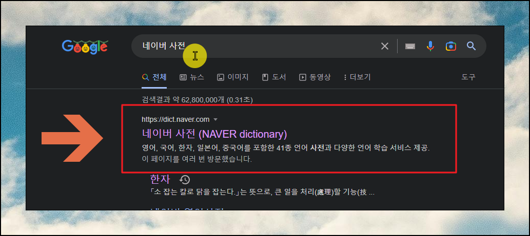 그럼 바로 모르는 한문찾기 방법을 알려드리겠습니다. 네이버 사전 사이트를 이용하면 되는데요. 이곳의 경우 영어, 국어, 일본어, 중국어 등 41종의 언어에 대한 사전 및 학습 서비스를 제공하고 있습니다.