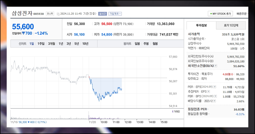 종목 페이지에서는 기업의 핵심 정보와 실시간 차트를 확인할 수 있습니다. 주식시장 데이터부터 투자의견까지 다양한 정보가 제공되며, 장 중에는 주가 변동이 실시간으로 반영돼요. 과거 데이터와의 비교 분석도 가능하여 장기적인 투자 전략 수립에 도움이 됩니다.