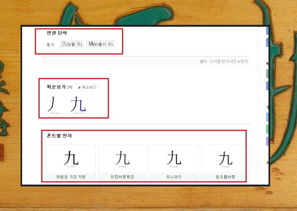 '아홉 구'를 검색한 결과입니다. 해당 문자와 관련된 단어, 고사성어, 뜻풀이, 부수, 모양자, 학습정보도 확인할 수 있습니다.