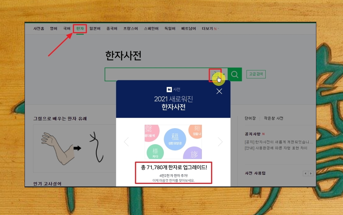 네이버 한자 그려서 찾기 쉬운 방법