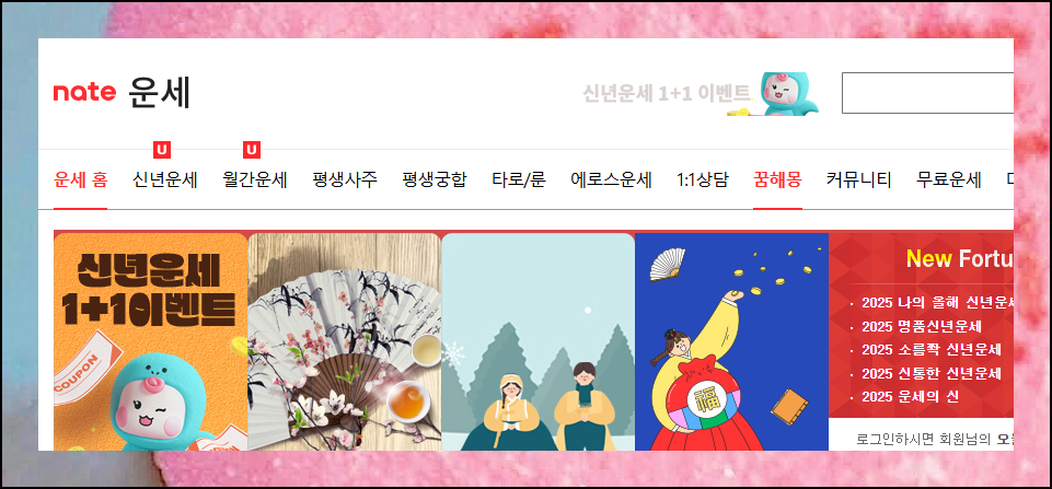 네이트 운세 코너에 가면 무료로 사주풀이를 볼 수 있는 공간이 마련되어 있습니다. 여기서 꿈해몽을 선택하면 바로 이용할 수 있어요. 다른 사이트들은 대부분 회원가입이나 결제가 필요한데요. 네이트는 그런 과정 없이 무료풀이 결과를 확인할 수 있습니다.