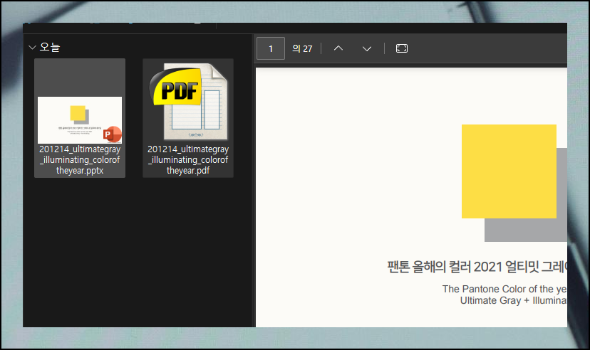 작업이 완료되면 PPT가 어떻게 변환 된 것인지 확인할 수 있습니다. 이전 포맷과 동일하게 27페잊로 구성되어 있네요. 여기에 더하여 사진이나 글이 문제 없이 동일한 모습으로 배치되어 있습니다. 이렇게 퀄리티 저하 없이 원본 그대로의 모습을 유지할 수 있으니 활용해 보세요.