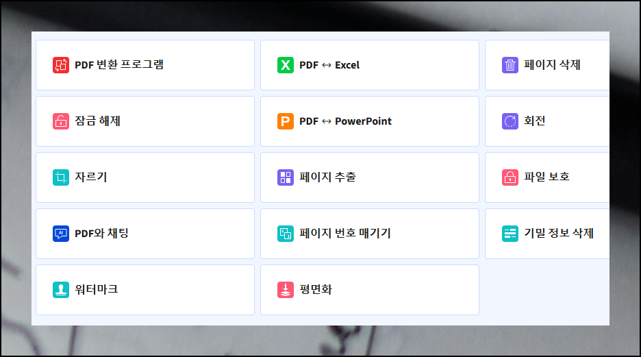홈페이지에 바로 보이는 [PPT PDF 변환] 버튼이 눈에 띄네요. 이 아이콘만 클릭하면 우리가 원하는 변환 작업을 진행할 수 있습니다. 주변에 있는 다른 유용한 기능들도 살펴보세요. 파일 압축, 다양한 형식 전환, 여러 문서 통합까지 모든 것이 준비되어 있어요.