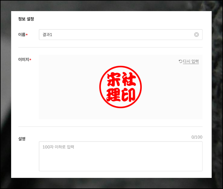 완성된 직인에 명칭과 설명을 추가하면 관리가 훨씬 수월해집니다. 관리 페이지에서 언제든지 생성한 도장 이미지를 내려받을 수 있어요. 다운로드가 된 이미지 파일은 배경이 투명하게 처리되어 있어 어떤 문서에 삽입해도 자연스럽게 어울립니다. 실제 도장을 찍은 것과 구분하기 어려울 정도로 품질이 뛰어나 공식 문서에도 자신 있게 활용할 수 있어요.