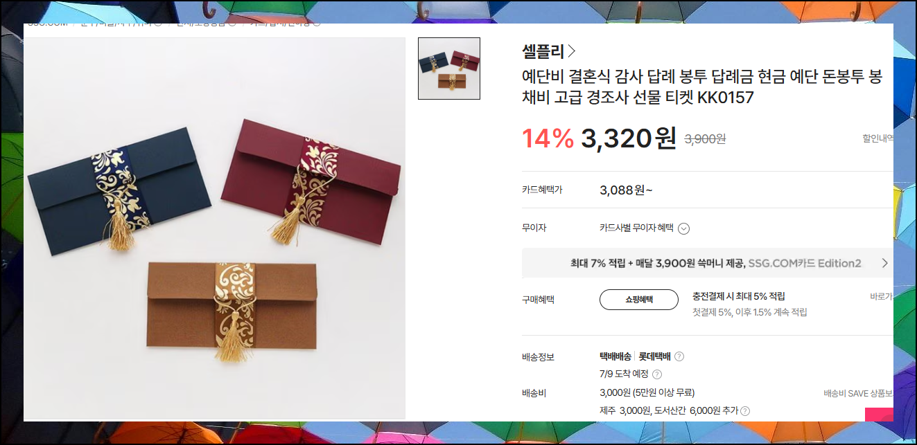 예단비는 현금이므로 전용 봉투에 정성스럽게 포장해서 보내는 것이 좋습니다. 특별한 규칙은 없지만 격식을 갖춘 봉투를 사용하는 것이 일반적이에요. 온라인 소셜 마켓에서 쉽게 구매할 수 있고 가격도 1만원 내외로 부담스럽지 않습니다. 결혼식 두 달 전쯤 보내는 것이 적절하다고 할 수 있어요.