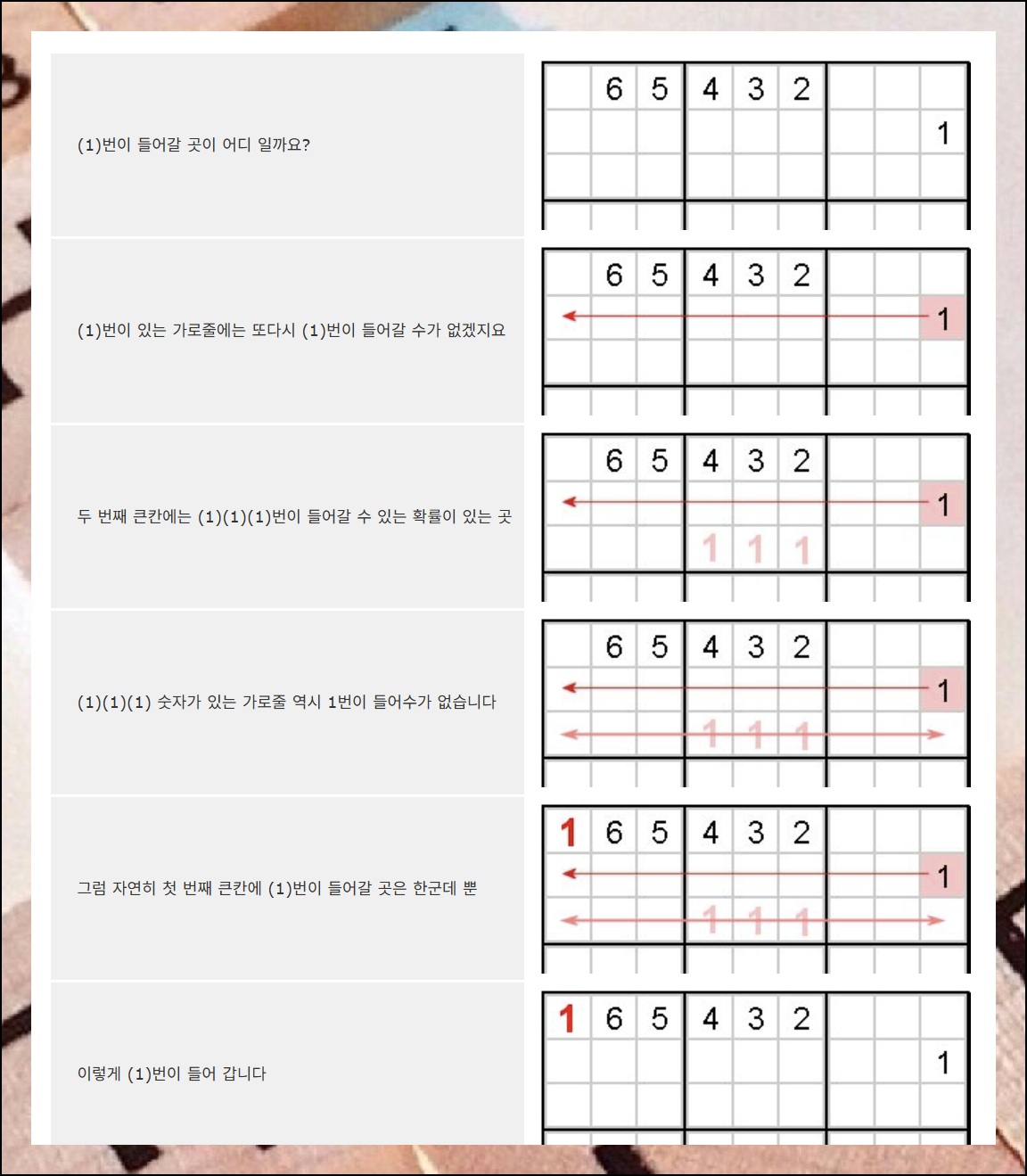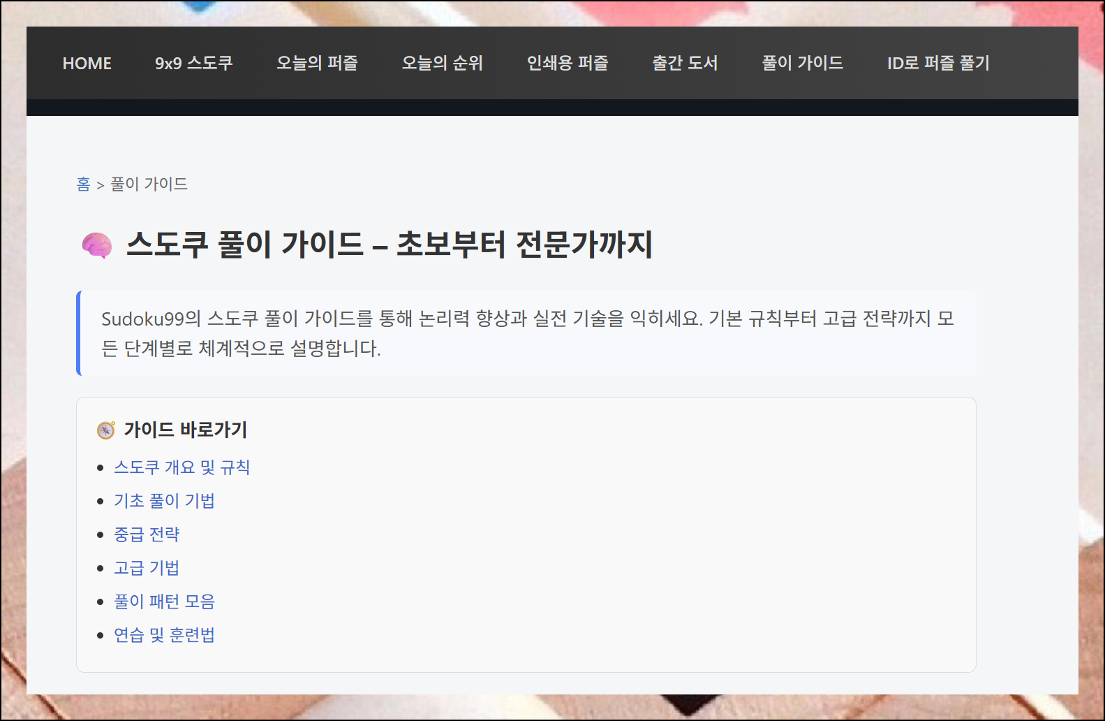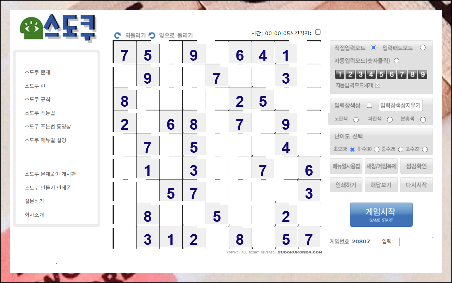 게임 진행 방법에 대한 설명이 정말 자세하게 되어 있어요. 처음 방문하는 사람도 쉽게 이해할 수 있도록 단계별로 안내해줍니다. 이 설명을 천천히 읽어보면 스도쿠코리아에서 경험할 수 없는 깊은 매력을 더 잘 느낄 수 있을 거예요.