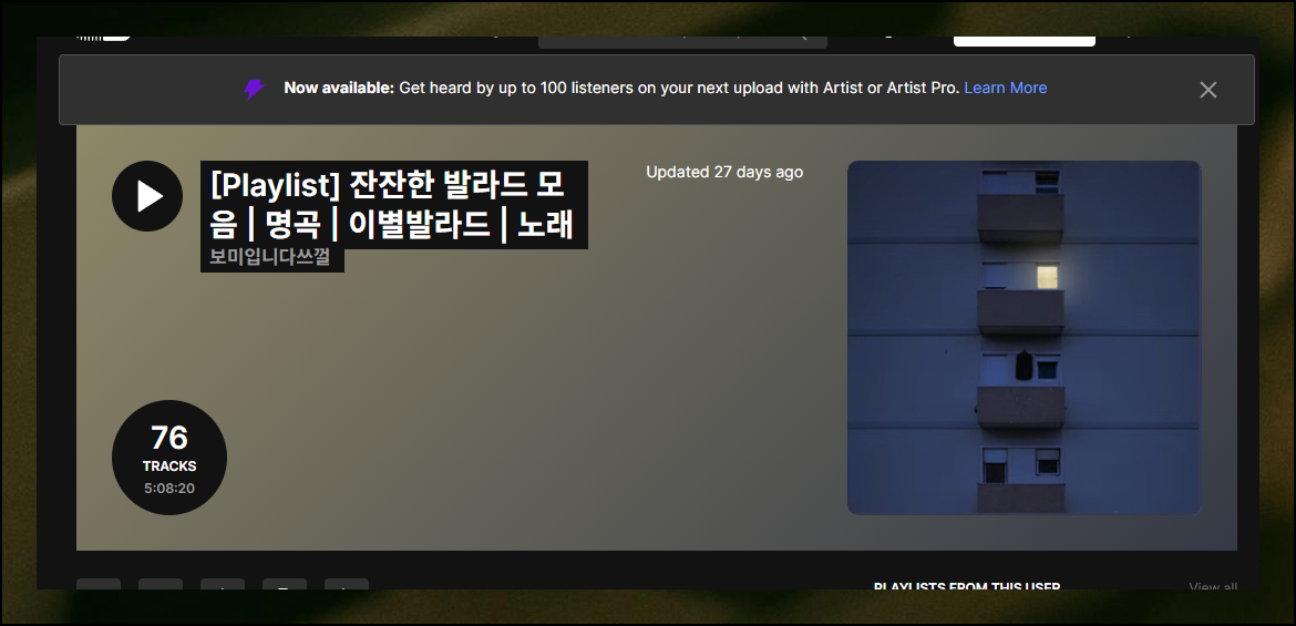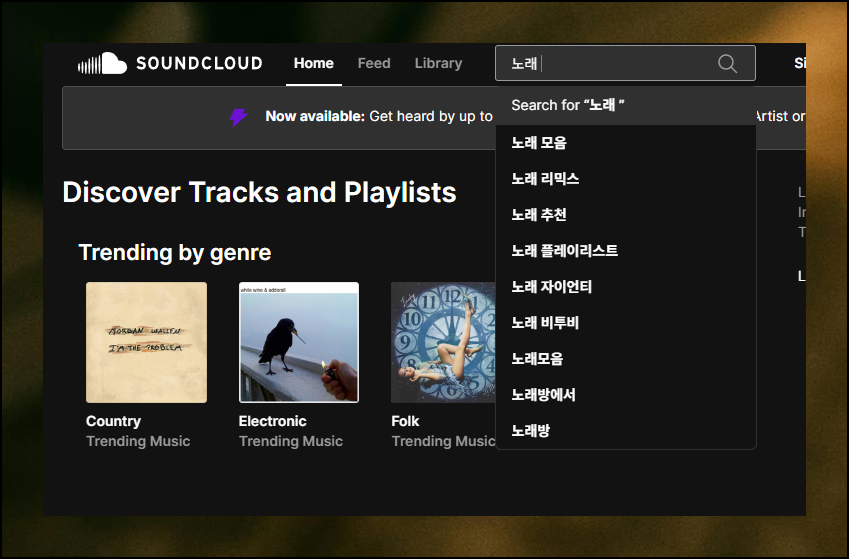 전 세계적으로 많은 사람들이 선택하는 "사운드클라우드"는 무료로 음악을 자유롭게 감상을 즐길 수 있는 플랫폼이에요. 국내보다 해외에서 특히 인기가 높은 서비스입니다. 엄청난 양의 오디오 트랙을 갖추고 있는 곳이죠. 국내외 다양한 장르의 곡을 한 곳에서 만나볼 수 있어서 음악 애호가들 사이에서 큰 사랑을 받고 있습니다. 무료 서비스라는 점에서 누구나 부담 없는 경우가 많아 이용하기 좋아요.