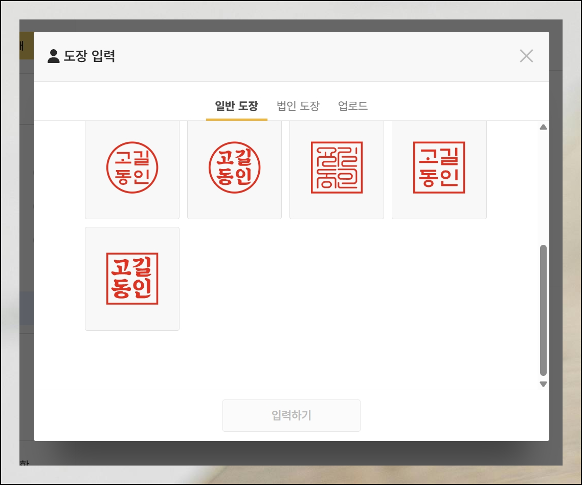 (5) 도장 유형과 텍스트 입력