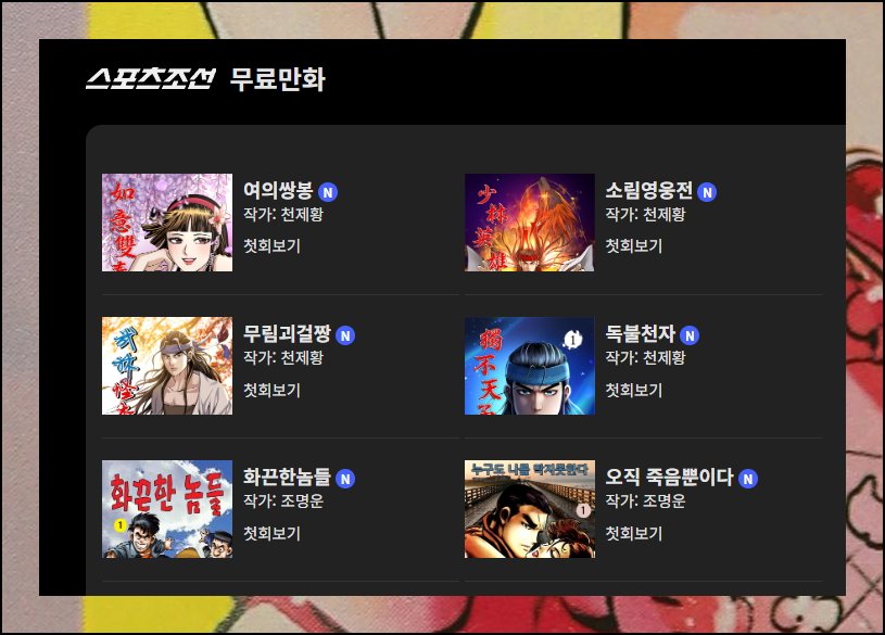 스포츠조선 무료만화 콘텐츠 이용 사이트