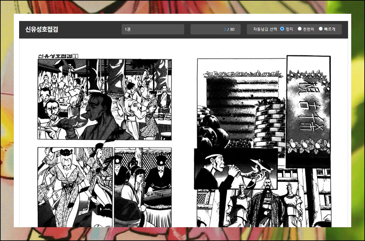 관심 가는 것 하나를 골라봤습니다. 산동악가 2부 개정판인데요. 개정판이라서 그런지 화질이 정말 선명해요. 한 화면에서 2페이지를 동시에 감상할 수 있게 구성되어 있습니다.