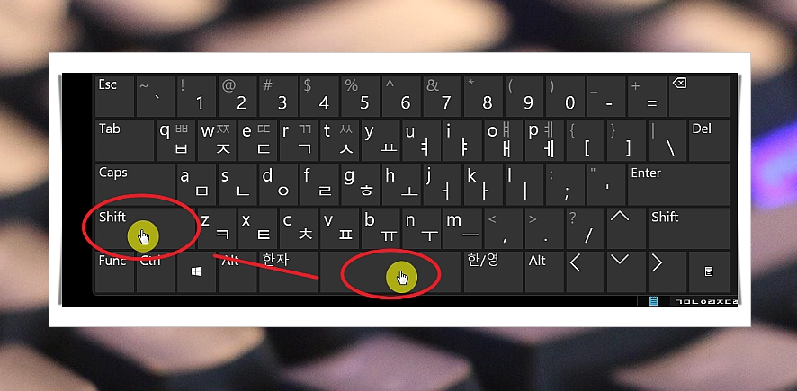 9. 지금까지 컴퓨터 한영전환 안될때 해결방법을 진행했음에도 아무런 효과가 없다면 "Shift+Space"키를 눌러보세요. 해당 단축키를 통해 한영 전환 문제가 해결되는 경우도 있습니다.
