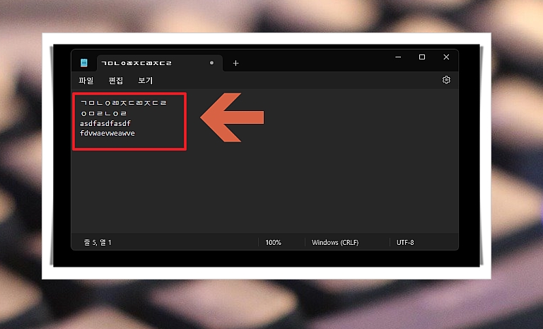 1. 일단 키보드가 제대로 작동을 하는지 테스트를 하기 위해 메모장을 열어보았습니다. 메모장에서 한글 또는 영어를 마음대로 작성해 보세요. 제 경우에는 제대로 됩니다.