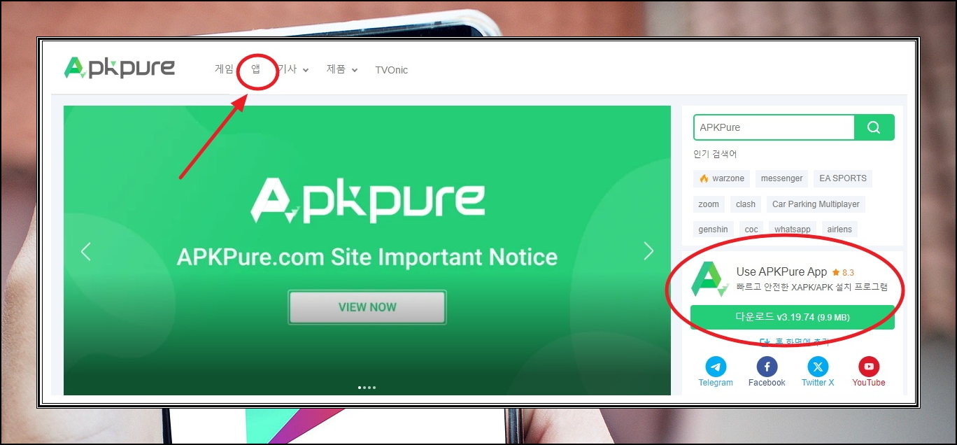1. 요즘에는 중국산 안드로이드 기기를 많이 사용하기도 합니다. 이 경우에 구글 play스토어가 없어서 불편함을 겪는 경우가 있어요. 이럴 때 사용하는 것이 APKPure에요. 구글 계정으로 로그인하지 않아도 누구나 쉽게 스마트폰 앱을 다운로드 받거나 설치할 수 있어요. 그런 공식 홈페이지에 접속해서 어떻게 하는지 알려 드리겠습니다.