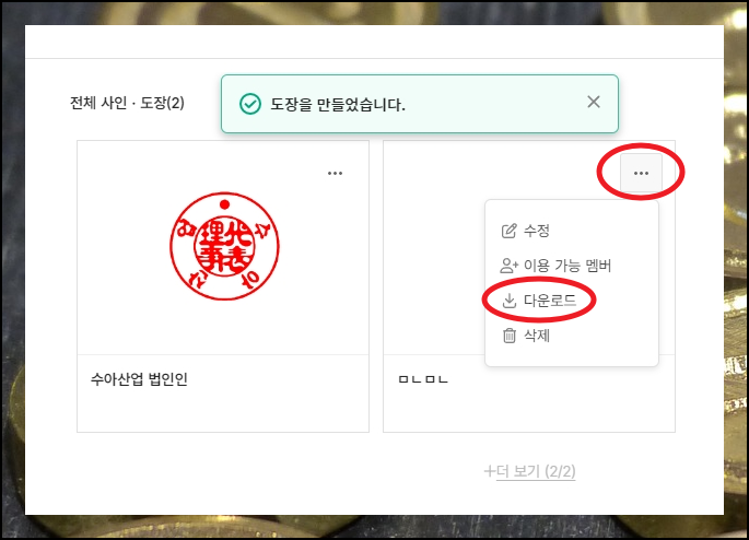 이 서비스는 개인용뿐만 아니라 법인용 제작도 지원하여 다양한 용도로 활용이 가능합니다. 게다가 이렇게 만든 이미지 파일을 가지고, 전자계약이나 온라인 문서에 바로 사용할 수 있어 매우 실용적이죠.