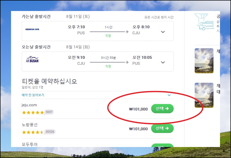 저렴한 김해 제주 항공권 예약하는 방법 따라하기