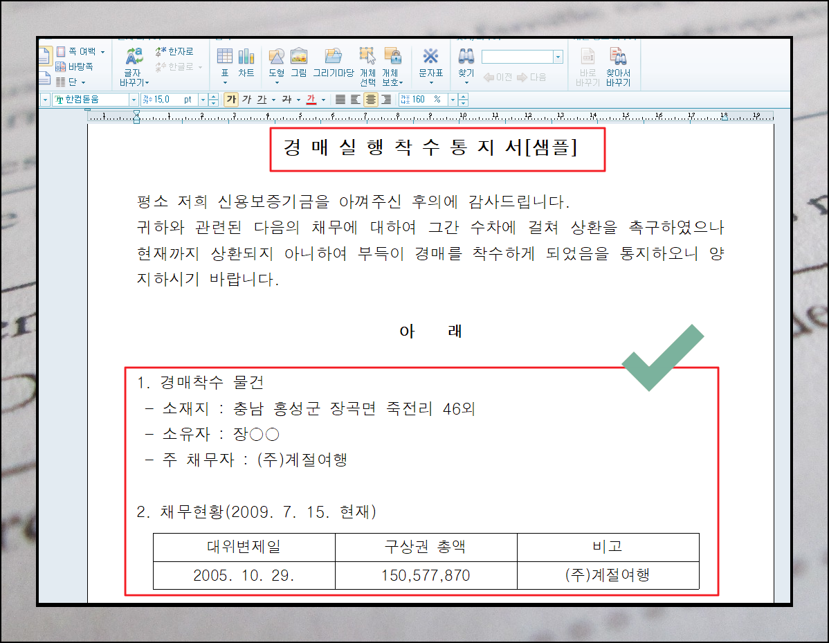 6. 경매실행착수통지서 살펴보기