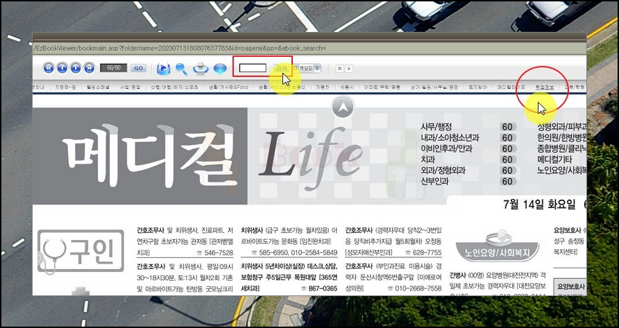 우리가 종이 신문으로 보았던 내용 구성 그대로 교차로 뷰어 프로그램을 통해 만날 수 있어요. 검색 기능, 페이지 넘김 기능도 있고, 눈이 잘 안 보이는 분들을 위하여 확대 기능도 있어요. 뷰어 상단을 보면 사업, 창업, 자동차, 취업 등의 메뉴가 있는데요. 구인구직 정보를 얻고 싶다면 [취업] 메뉴를 클릭해 주세요.