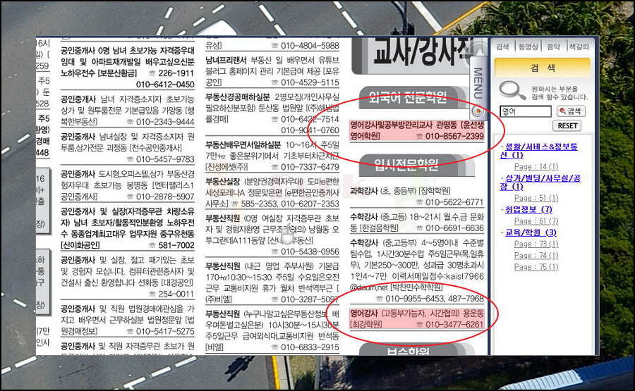 이렇게 교차로 신문에 하이라이트 표시로 영어 관련 구인공고가 체크되었어요. 이런 식으로 원하는 정보를 신속하고, 빠르게 찾을 수 있어요. 하이라이트 서비스로 인하여 보고 싶은 부분만 찾아볼 수 있죠.