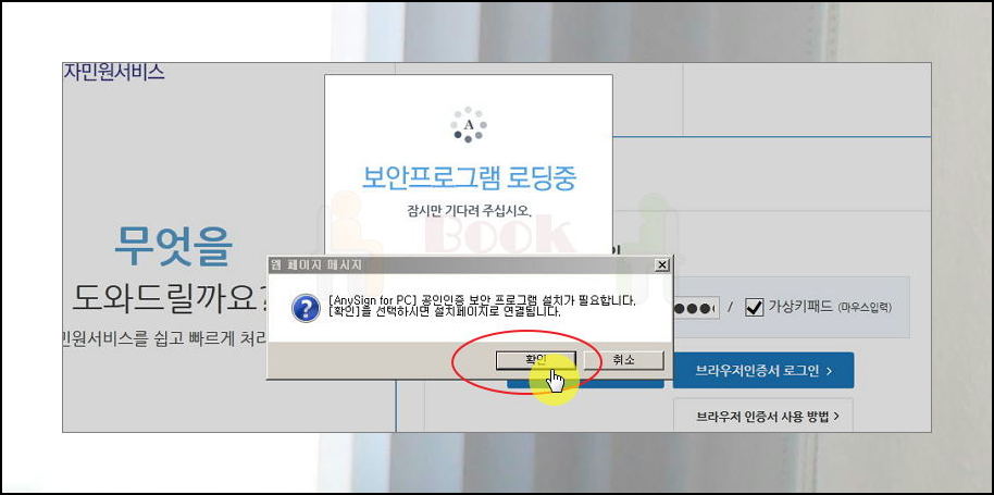 처음 이용하신다면 AnySign for PC 공인인증 보안 프로그램도 설치를 해야 해요.